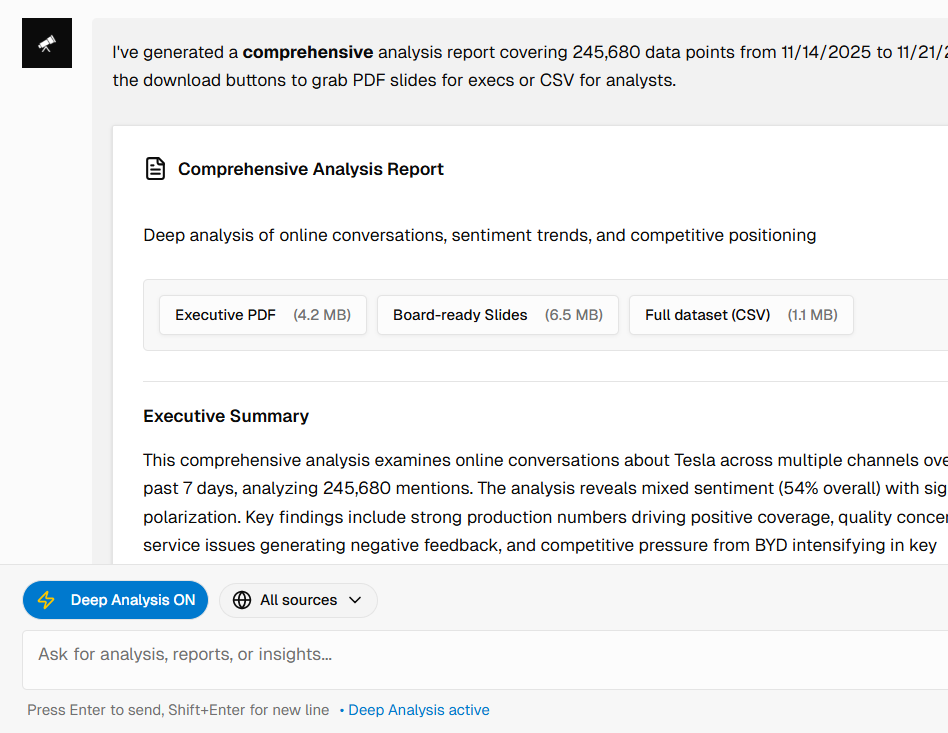 Track brand mentions, sentiment, and protect reputation across all channels in real-time.