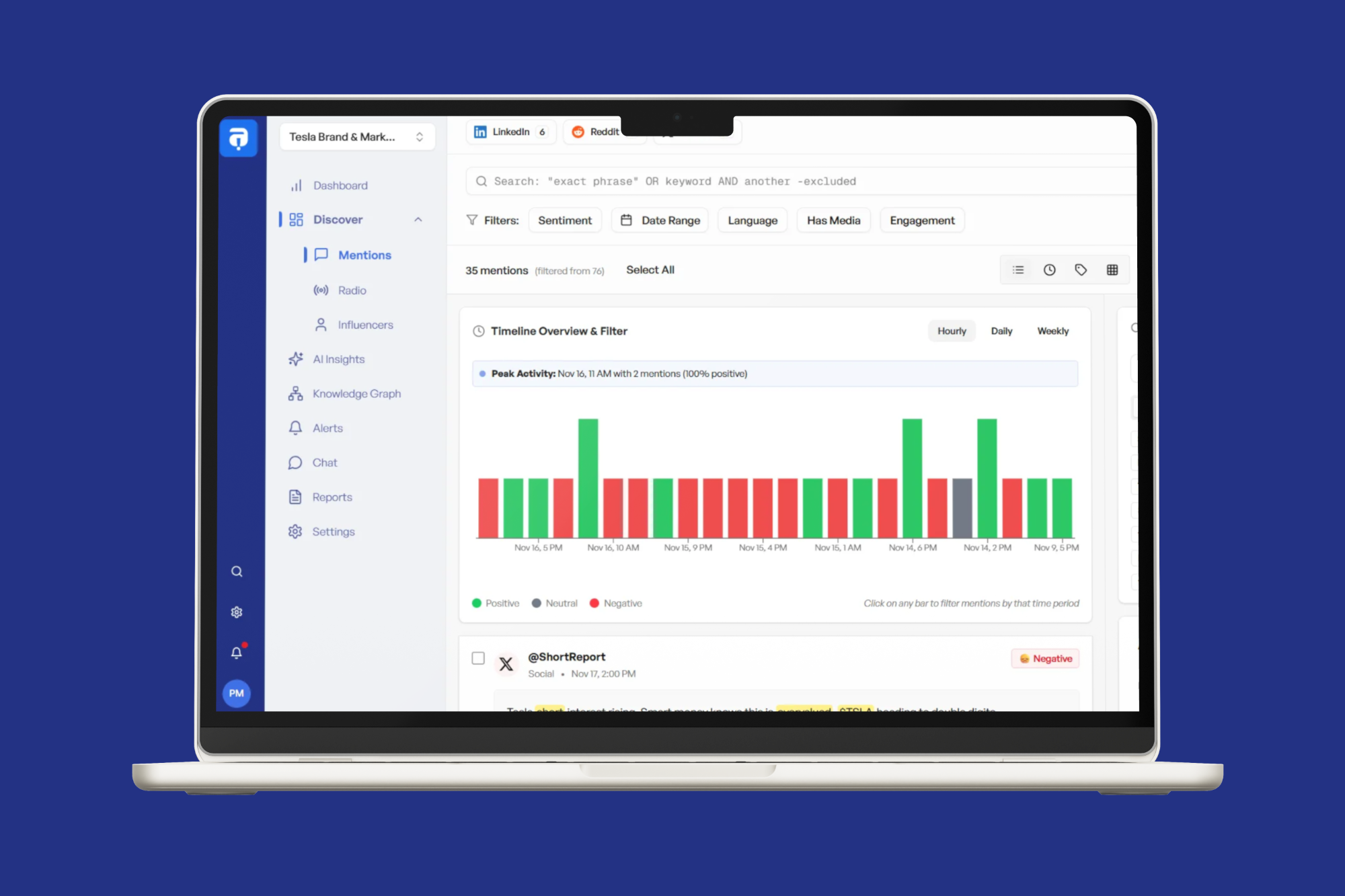 Regulatory intelligence, early warning systems, and sentiment analysis across radio, social, and news. Built for regulators and public sector organizations. 50+ languages. Secure, compliant infrastructure.